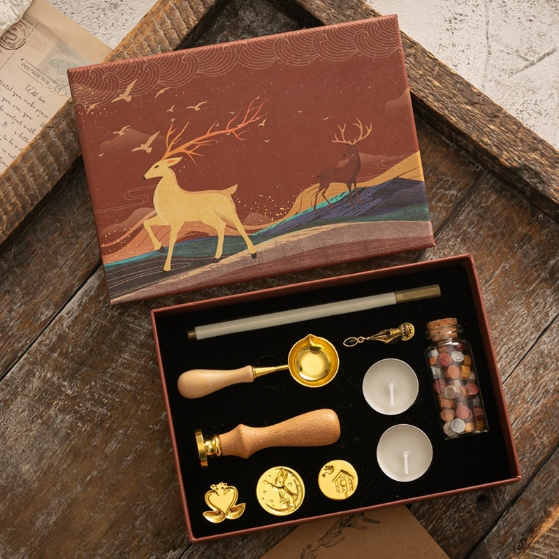 Vintage Wax Seal Stamp Set — Elk-Themed Gift Box
